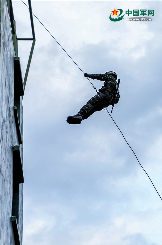 2020年3月21日,特战队员在进行端腹下滑训练。