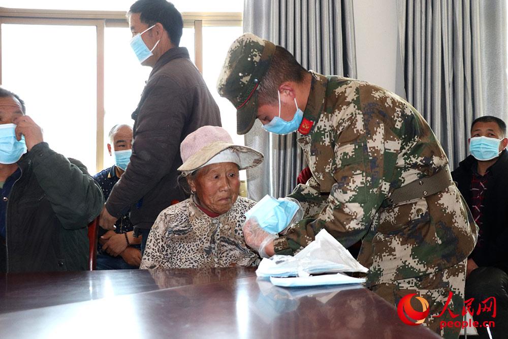帮老人手把手戴上口罩。