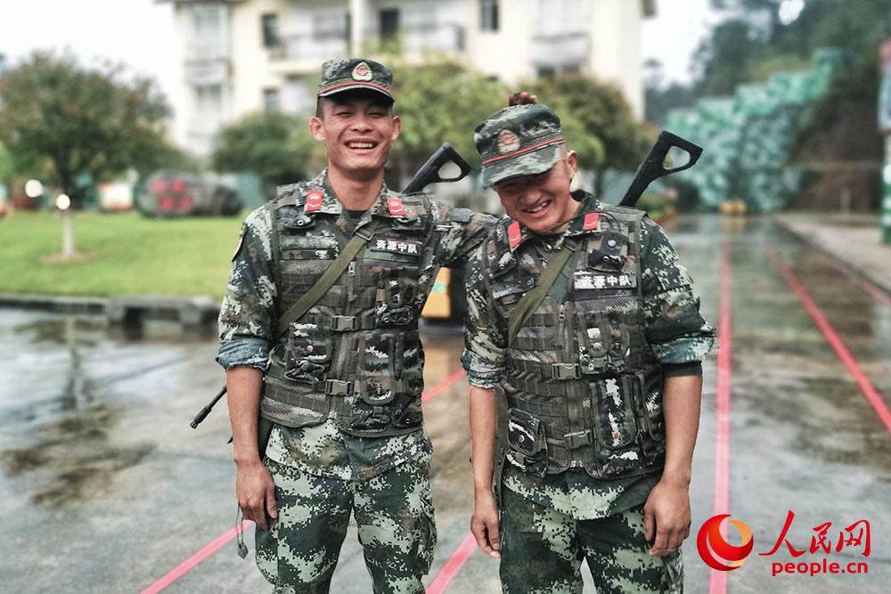 比赛结束,列兵张孝平与班长尚富顺依偎在一起。