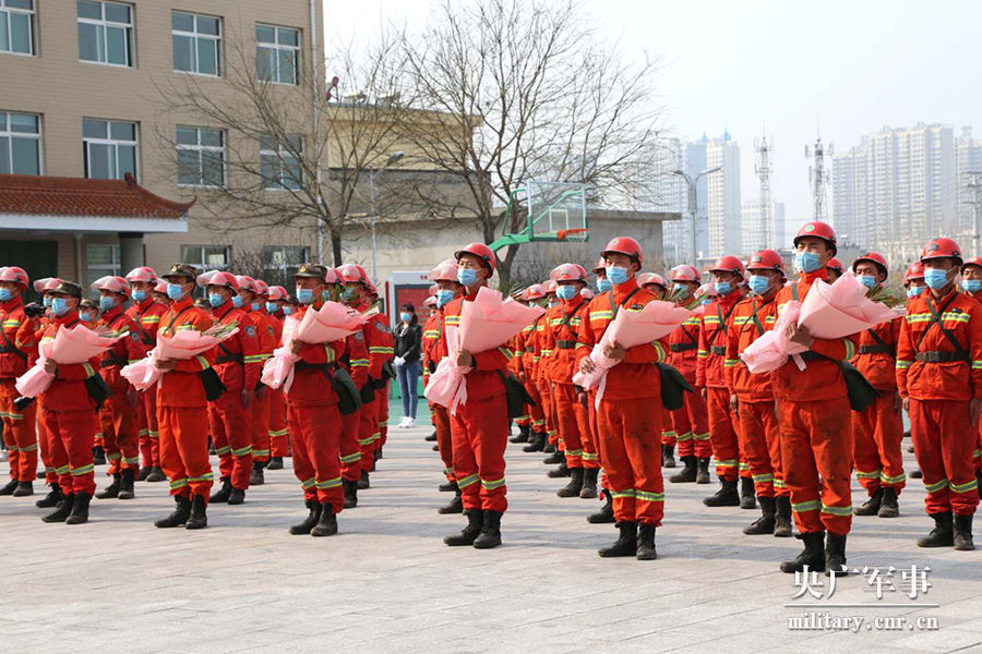 武警山西总队官兵撤离火场归建,当地群众夹道送行最可爱的人