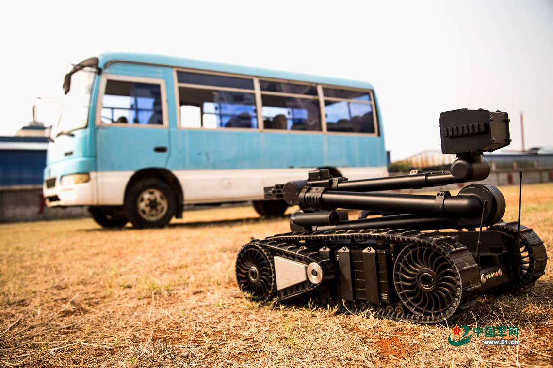 排爆手利用排爆机器人进行搜索排爆。李义 摄