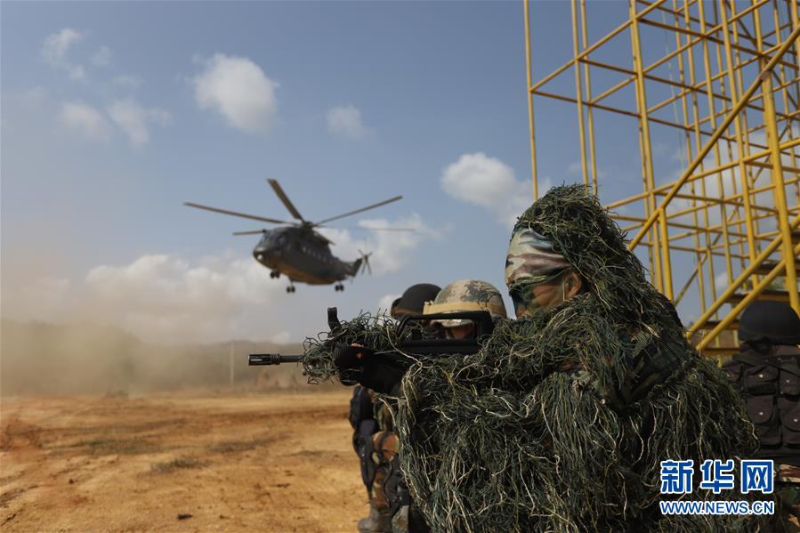 3月26日,在柬埔寨贡布进行的“金龙-2020”中柬两军联合训练中,中柬突击分队机降协同突击。 此次“金龙-2020”中柬两军联合训练于3月15日开训,以联合打击恐怖主义势力为背景,出动装备力量多元,空地一体联合协同,聚焦反恐贴近实战。中方参训兵力主要由陆军第75集团军精干力量混合编成,中柬双方共有800余人参训。 新华社发