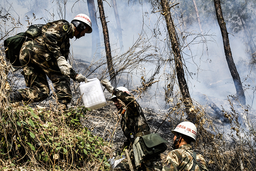 兄弟们,上!武警官兵紧急扑救云南香格里拉森林大火