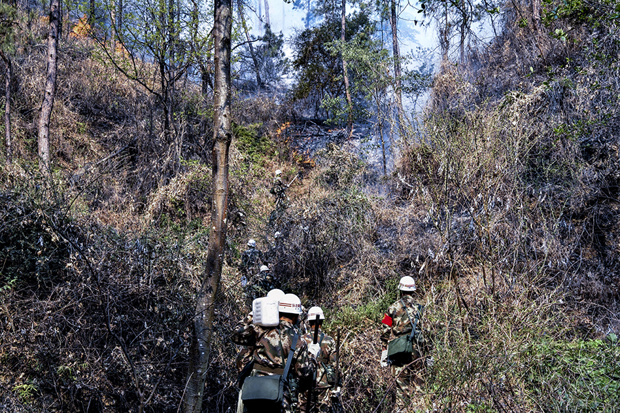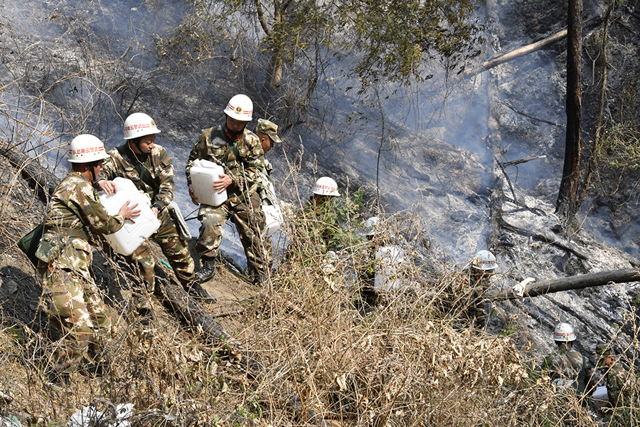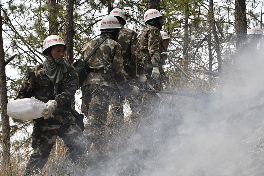 兄弟们,上!武警官兵紧急扑救云南香格里拉森林大火
