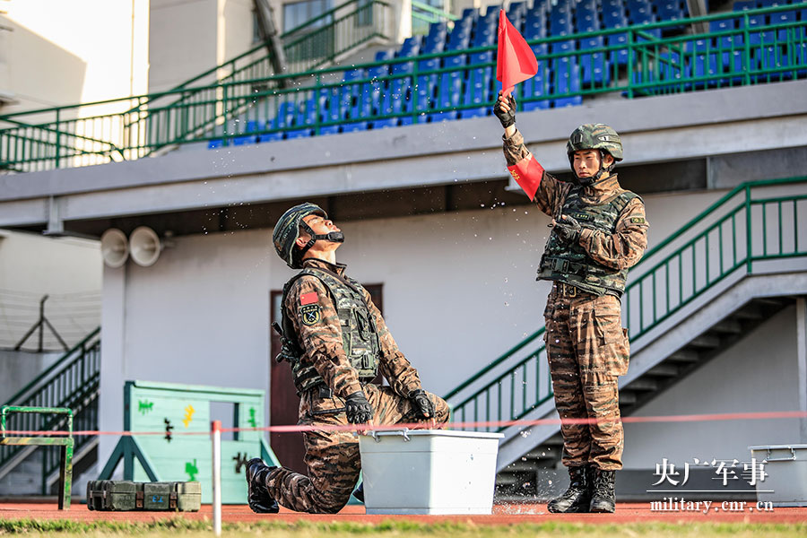 “五能合一”综合体技能训练中,特战队员正在进行闭气训练