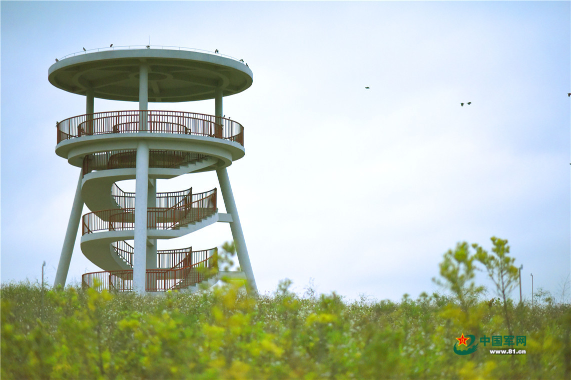 3月31日,深圳红树林生态保护区内,一个观光台引来成群的鸟儿歇脚。