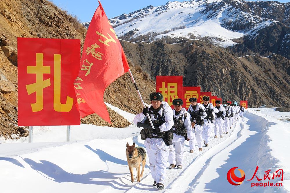 官兵行进在拉练途中