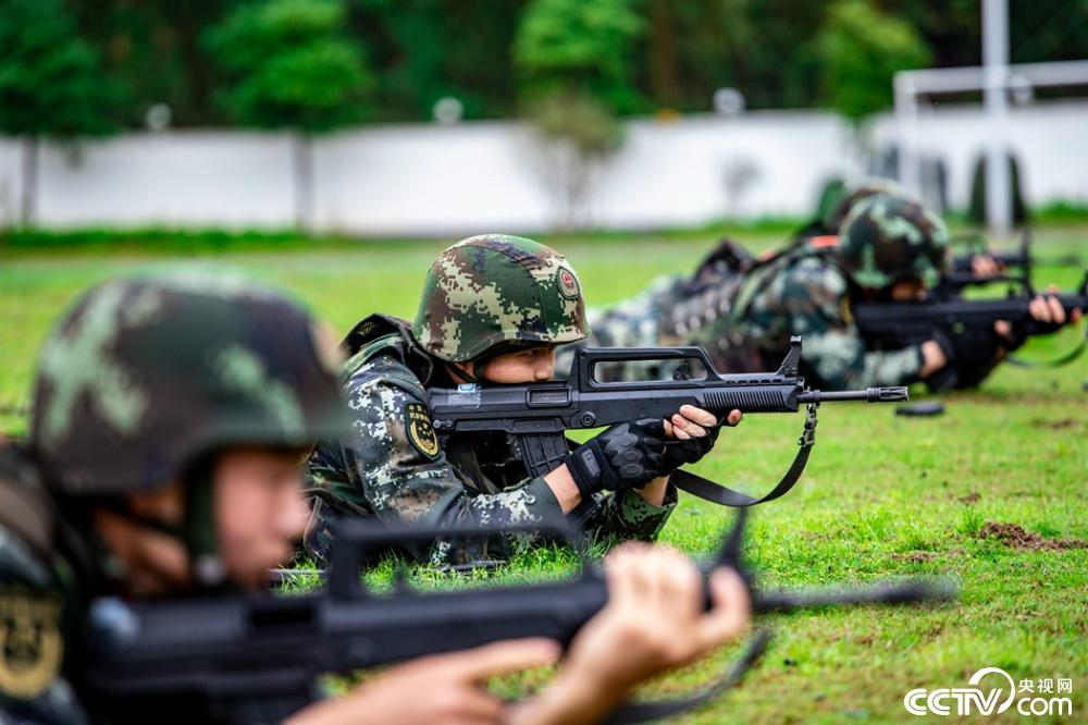 实拍武警官兵雨中实弹射击考核