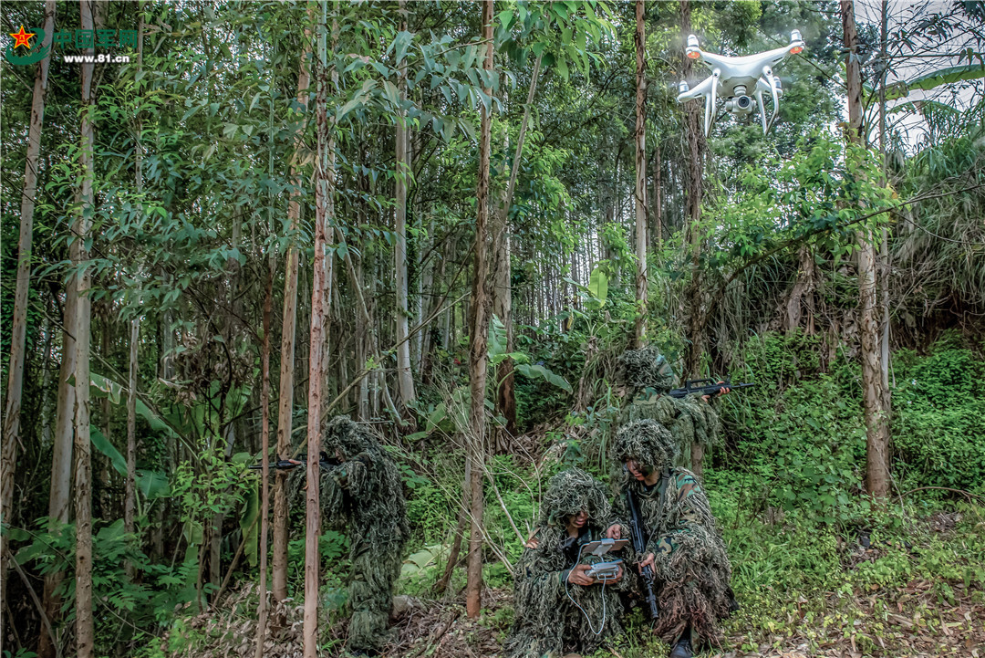 特战队员利用无人机侦察“暴恐分子”逃窜路径。