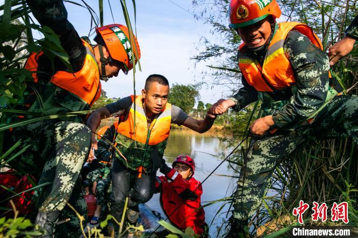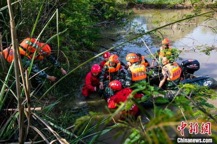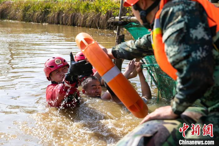 图为武警官兵和消防队员协力实施救援。 张宸硕 摄