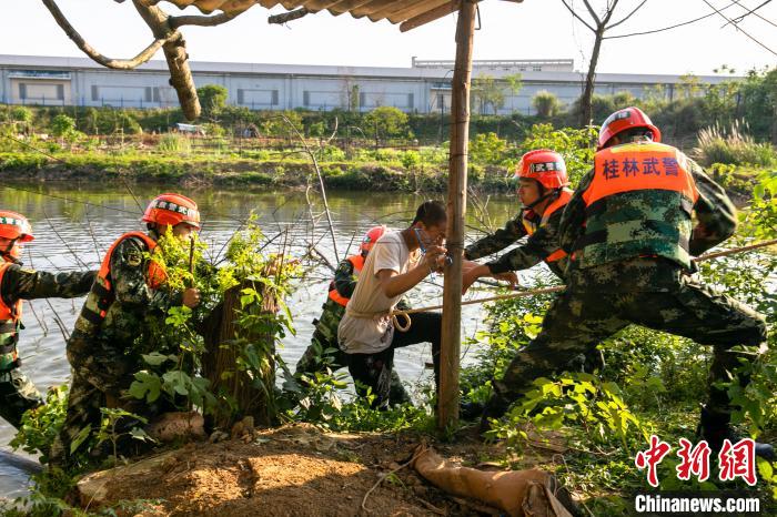 4月14日下午,武警广西总队桂林支队结合桂林地区防汛救灾工作实际,以漓江水域强降雨致使村庄内涝为模拟背景,联合驻地消防部队开展联合抗洪抢险救援演练。该演联紧贴地方讯情特点,重点围绕抢救落水群众、冲锋艇转移群众、运送物资等课目,突出锤炼抗洪抢险组织指挥和险情处置能力,有效提高驻地防汛抢险救援能力,为桂林地方经济社会发展和人民生命财产安全提供有力保障。