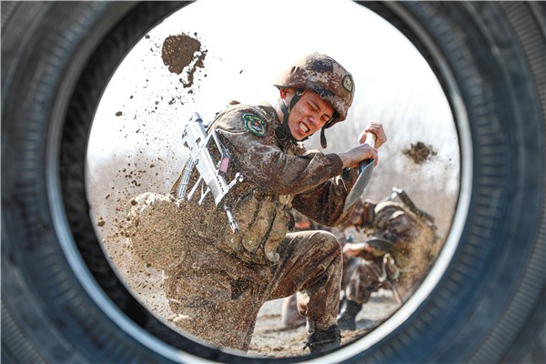 根据战斗方位,官兵迅速构筑掩体。黄飞皓 摄