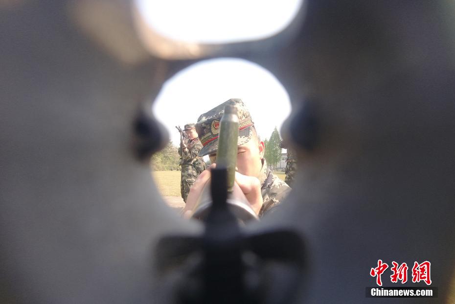 武警官兵进行定枪训练。 周益人(通讯员) 摄