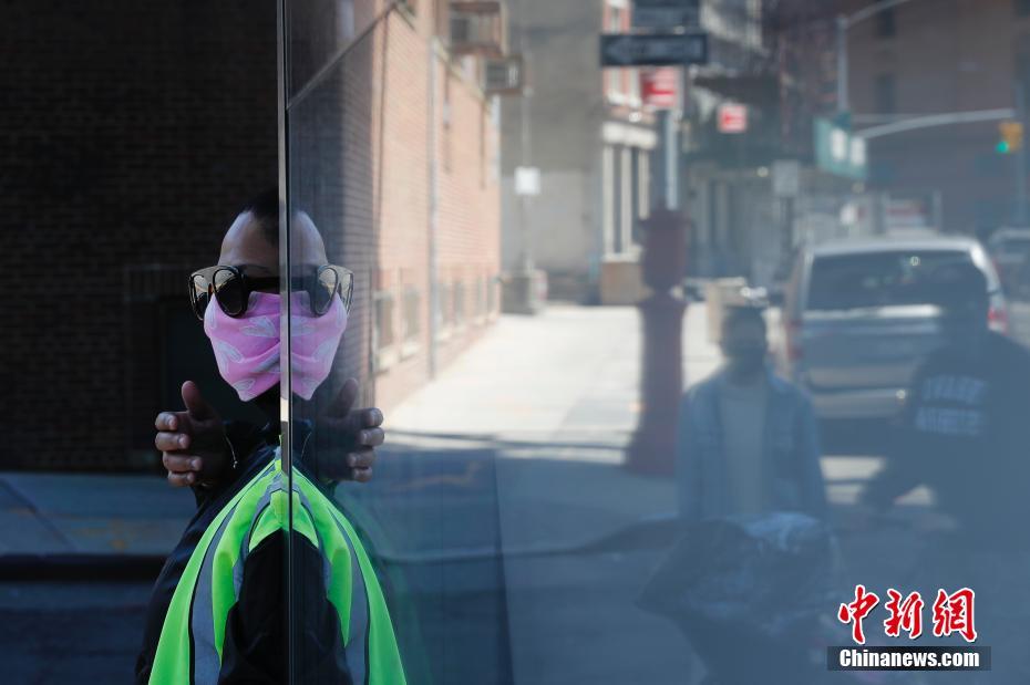 当地时间4月28日,纽约布鲁克林一名戴口罩的交通工作人员。 据美国约翰斯·霍普金斯大学实时统计数据,截至北京时间4月29日1时30分,美国新冠肺炎累计确诊病例已超过100万例。中新社记者 廖攀 摄