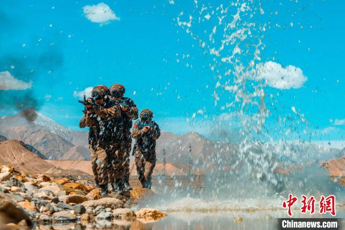 图为特战队员正在进行河滩追击训练。 杨浩 摄