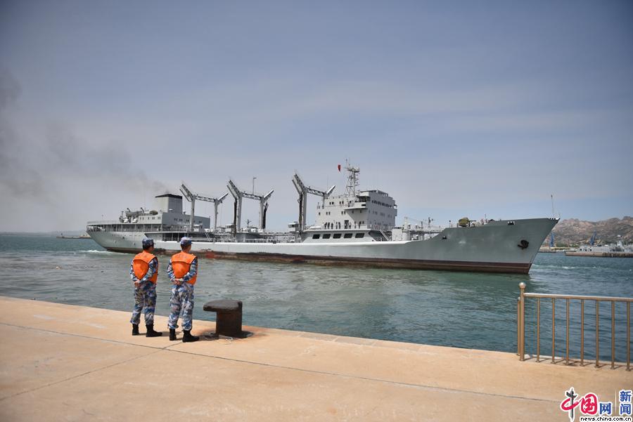 勤务官兵目送洪泽湖舰。