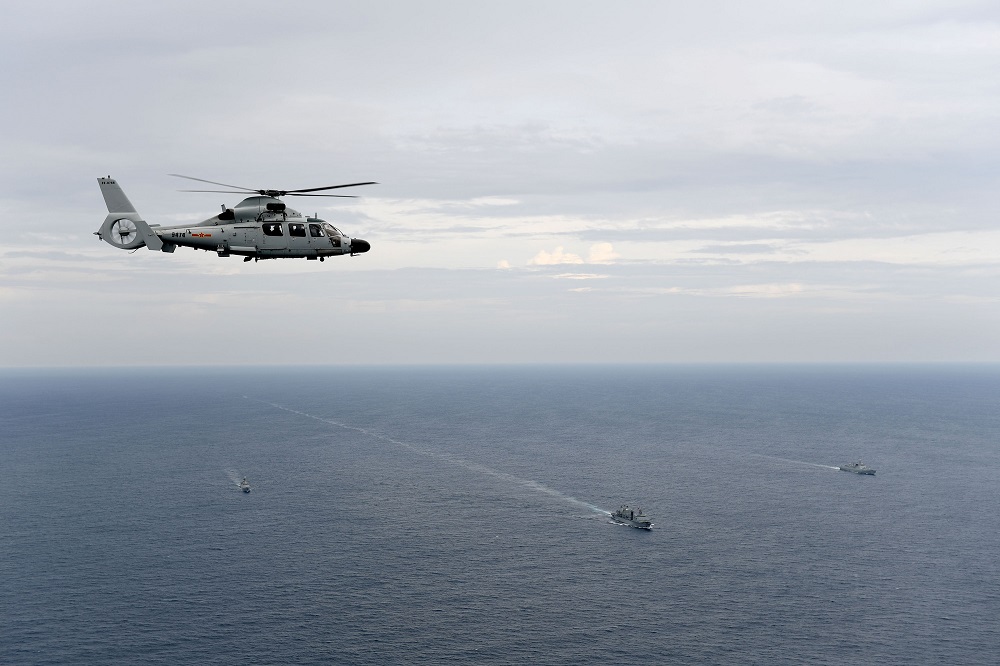 2020年5月14日,印度洋某海域,中国海军第35批护航编队进行舰机协同训练。 江山摄