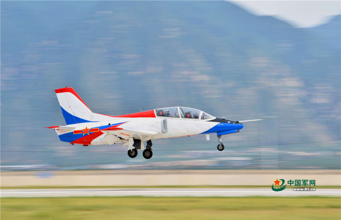 战机加力起飞。