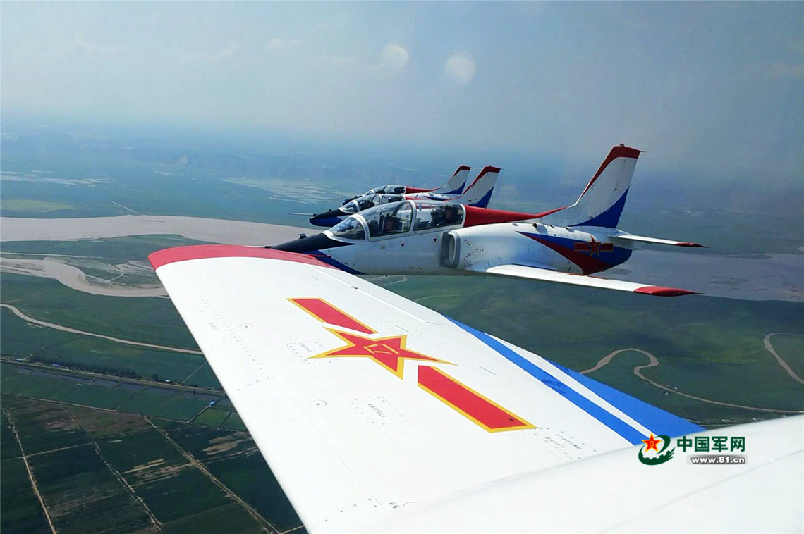 四机编队在空中展开训练。