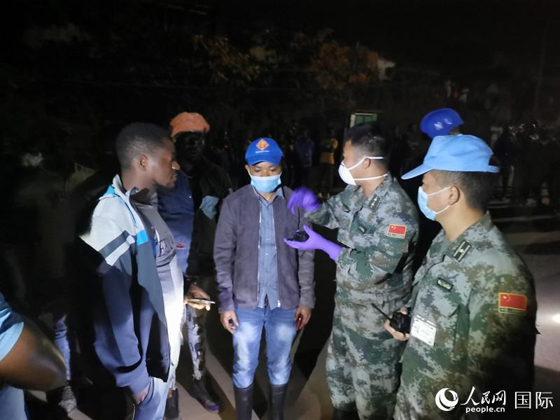 官兵与当地现场指挥商议处理意见(王玺摄)