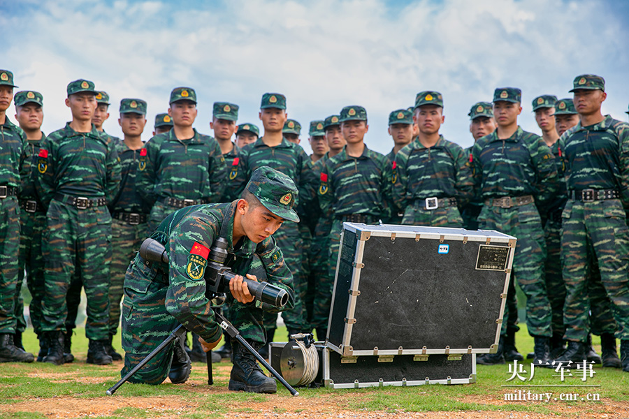 讲解示范爆炸物销毁器使用注意事项。张宸硕 摄