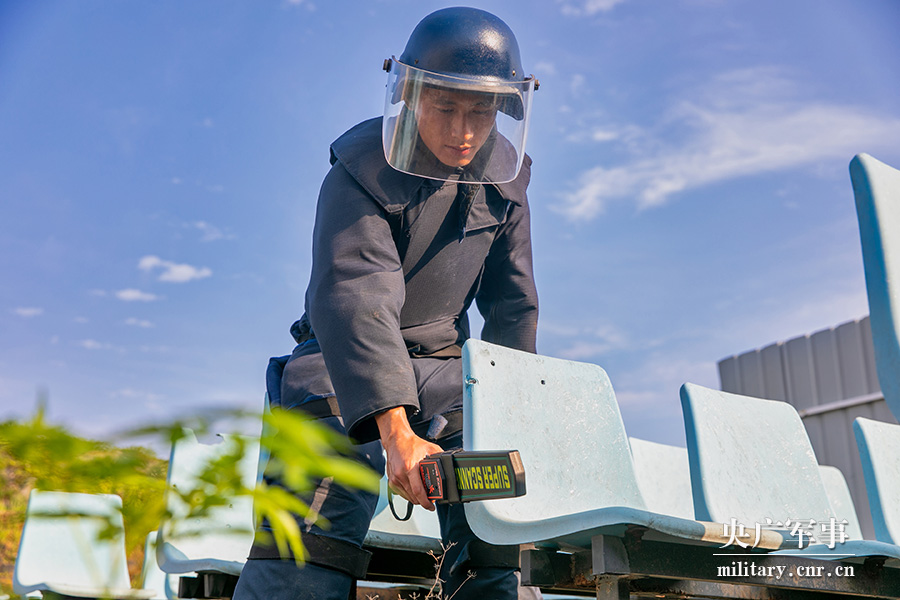 利用金属探测器搜查爆炸物。张宸硕 摄