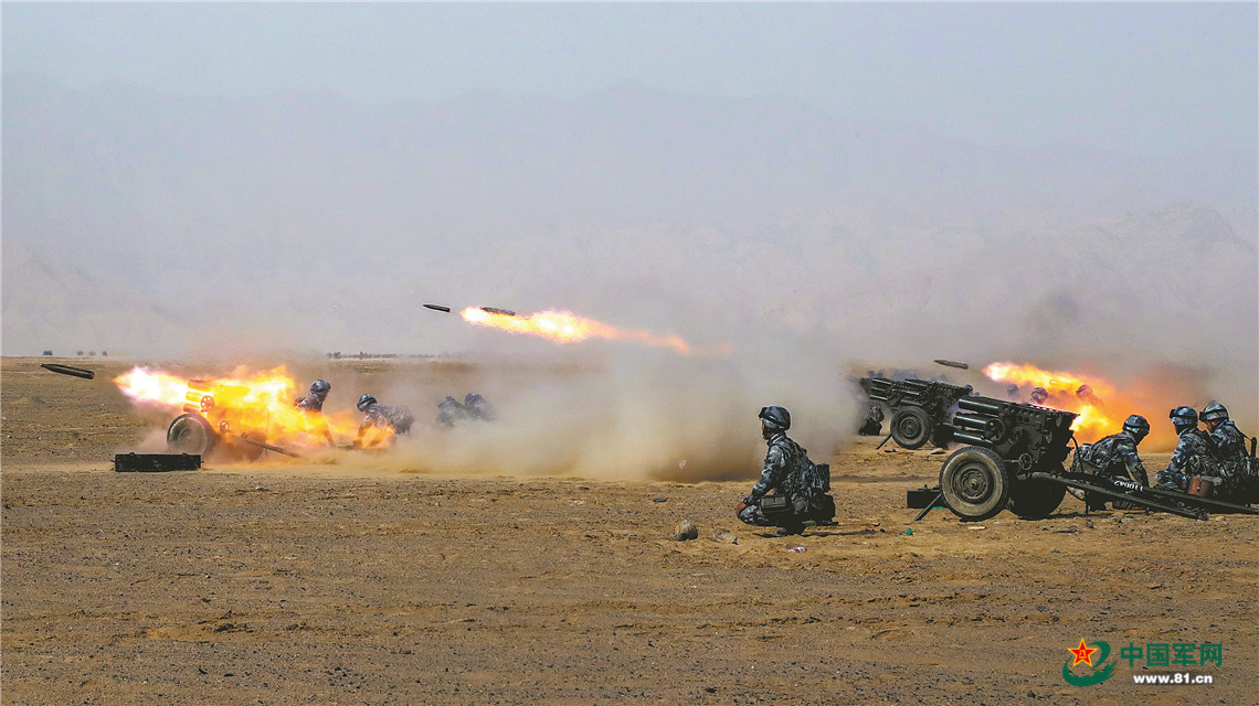 5月19日,空降兵某旅在西北高原陌生地域开展集群火力打击演练。
