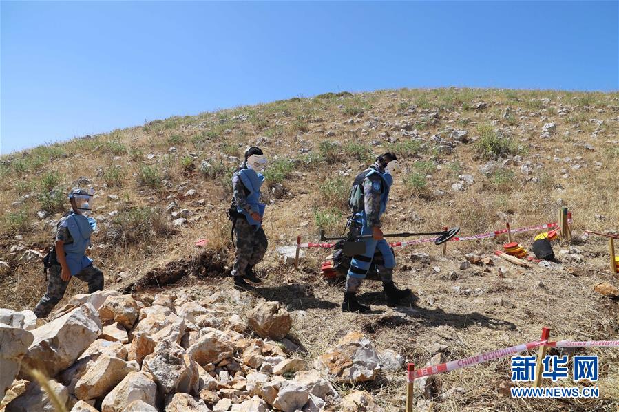 6月9日,中国扫雷官兵进入黎巴嫩与以色列边境“蓝线”附近区域的雷场作业。 中国第18批赴黎巴嫩维和多功能工兵分队扫雷官兵近日正式开赴黎巴嫩与以色列边境“蓝线”附近区域,执行人道主义扫雷任务。这标志着联合国驻黎巴嫩临时部队(联黎部队)中断10年的人道主义扫雷行动再次展开。 新华社发(孙帅摄)