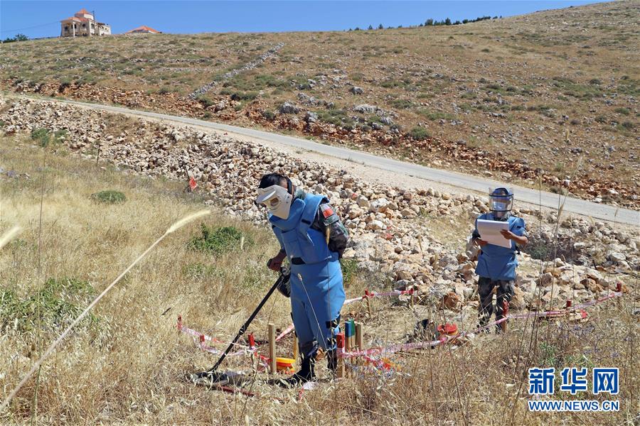 6月9日,中国扫雷官兵在黎巴嫩与以色列边境“蓝线”附近区域进行人道主义扫雷。 中国第18批赴黎巴嫩维和多功能工兵分队扫雷官兵近日正式开赴黎巴嫩与以色列边境“蓝线”附近区域,执行人道主义扫雷任务。这标志着联合国驻黎巴嫩临时部队(联黎部队)中断10年的人道主义扫雷行动再次展开。 新华社发(孙帅摄)