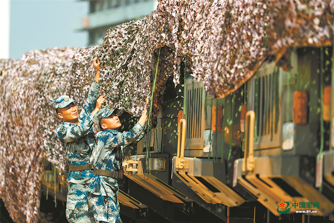对车辆装备进行伪装。