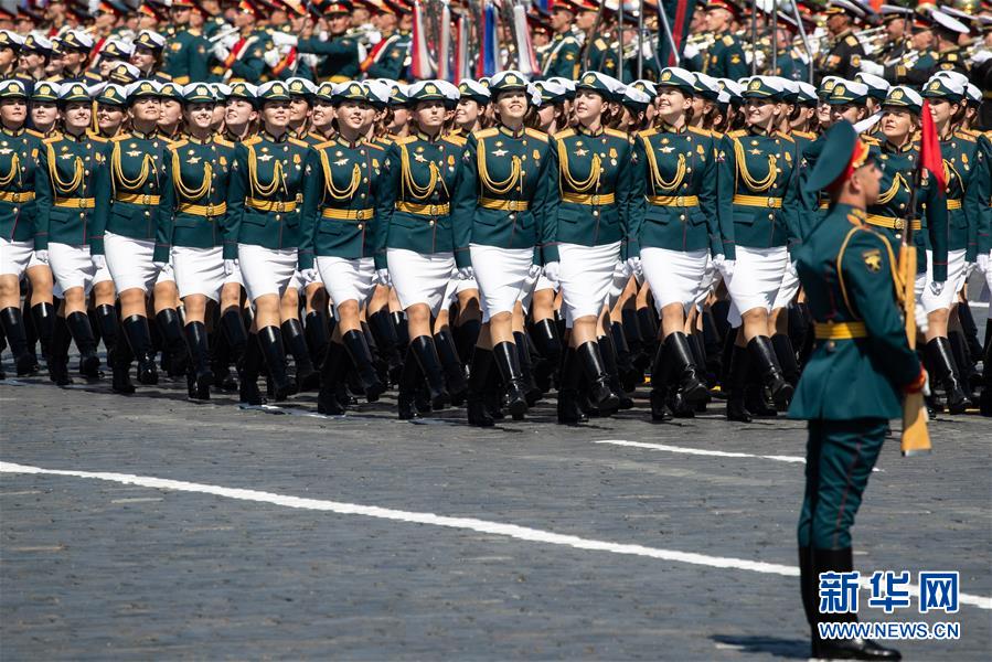 6月24日,女兵列队参加在俄罗斯莫斯科红场举行的阅兵式。 当日,俄罗斯在首都莫斯科隆重举行纪念卫国战争胜利75周年阅兵式。 新华社记者 白雪骐 摄