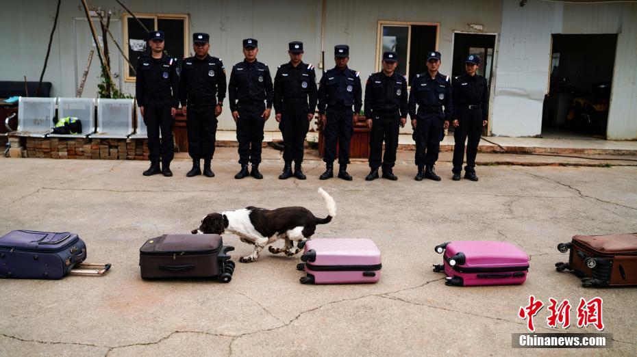 6月23日,训犬员列队观看缉毒犬寻找违禁品。中新社记者 康平 摄