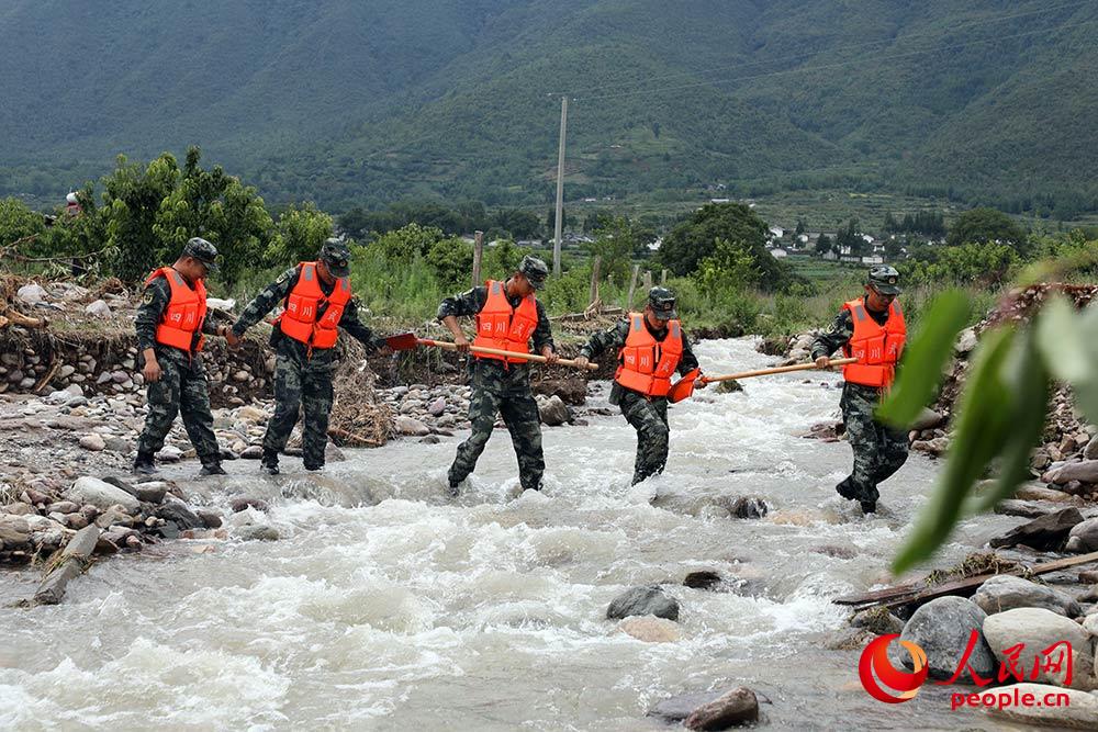四川冕宁:武警官兵全力协助开展救援工作