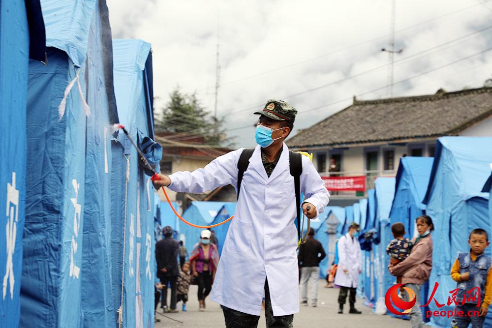 医疗小分队在冕宁县曹古安置点开展消杀防疫工作。