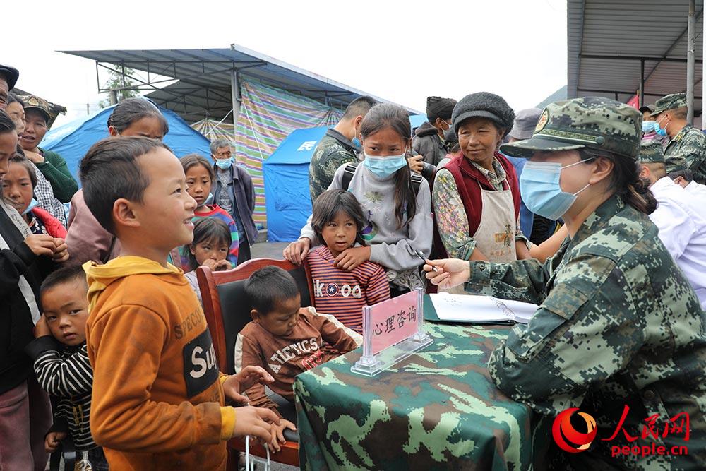 医疗小分队心理医生为安置点小朋友开展心理疏导工作。