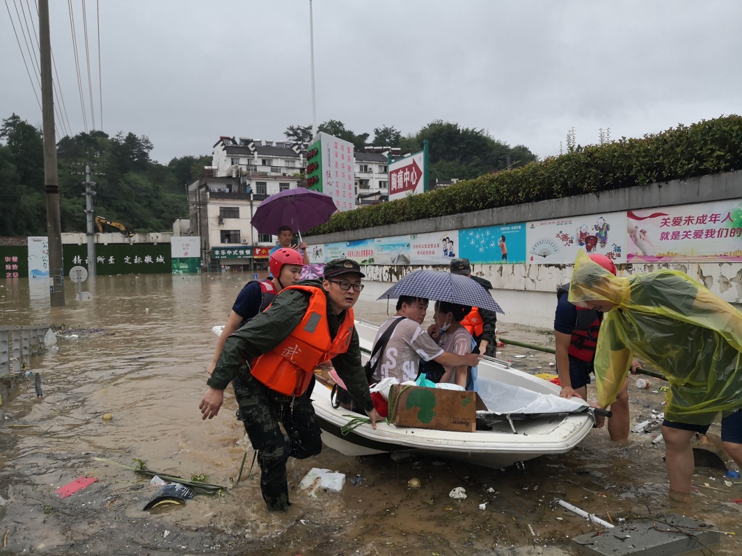 皖南地区强降雨引发内涝 武警官兵紧急救援受灾群众为转运考生做准备