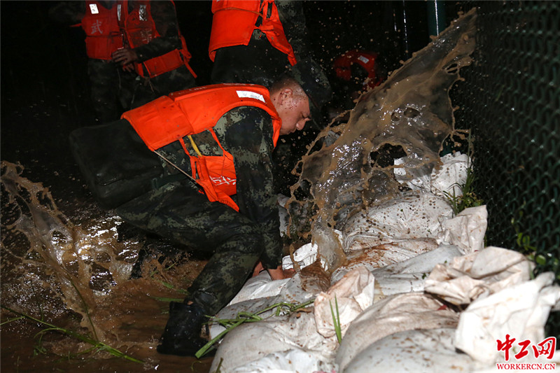 2020年7月8日凌晨,武警景德镇支队官兵在景德镇市珠山区观音阁地区搬运沙袋,加固昌江堤坝。受连续强降雨影响,7月7日晚,江西省景德镇市珠山区观音阁地区昌江发生漫堤险情。武警江西总队景德镇支队迅速出动50名兵力担负加固堤坝任务。截止7月8日凌晨3时35分,共装填搬运沙袋2000余袋,加固堤坝180米,目前险情已排除。人民视觉