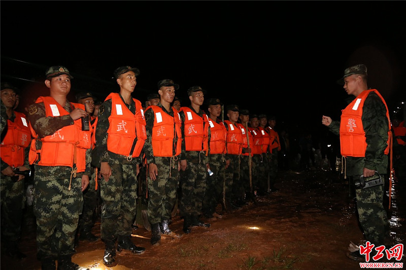 2020年7月8日凌晨,武警景德镇支队官兵在景德镇市珠山区观音阁地区搬运沙袋,加固昌江堤坝。受连续强降雨影响,7月7日晚,江西省景德镇市珠山区观音阁地区昌江发生漫堤险情。武警江西总队景德镇支队迅速出动50名兵力担负加固堤坝任务。截止7月8日凌晨3时35分,共装填搬运沙袋2000余袋,加固堤坝180米,目前险情已排除。人民视觉