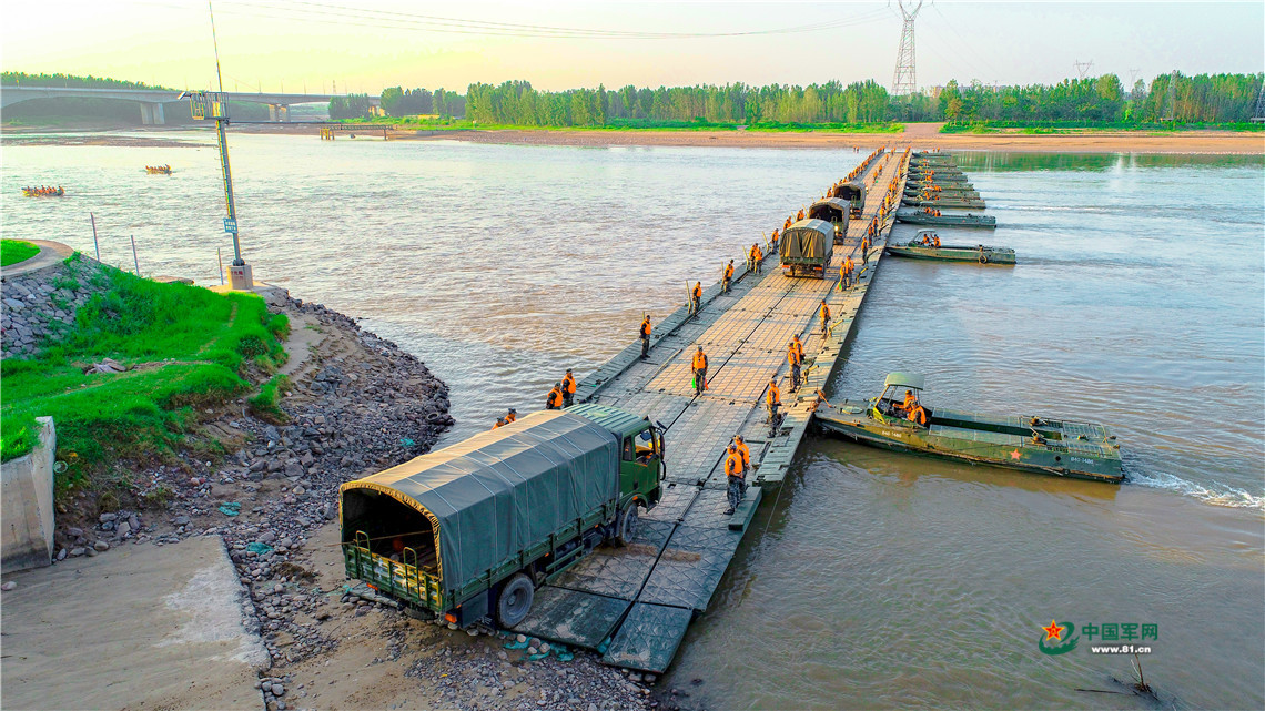 航拍丨舟桥兵渡河工程保障演练 “战桥”这样飞架黄河