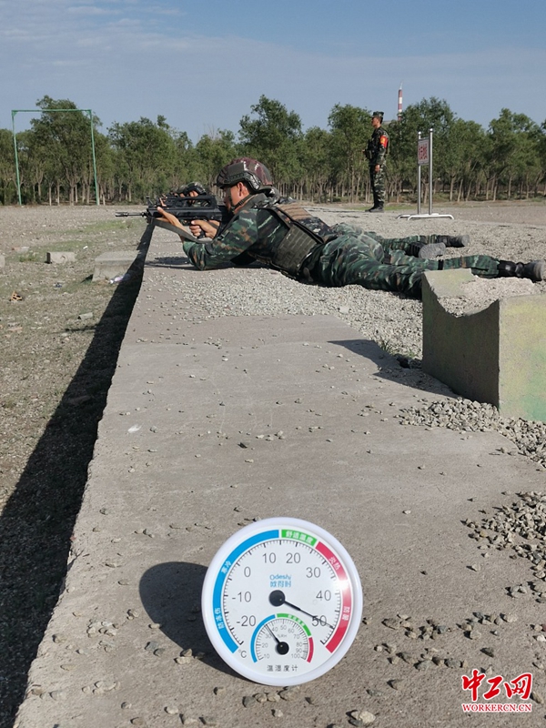 2020年7月7日,宁夏石嘴山,官兵进行实弹射击。近日,石嘴山地区地表温度达到50摄氏度,武警宁夏总队石嘴山支队官兵克服高温天气,着眼任务需要,在某训练场冒着高温酷暑开展“夏练三伏”军事训练活动,全面提升官兵军事素质。作者:罗辉波/人民视觉
