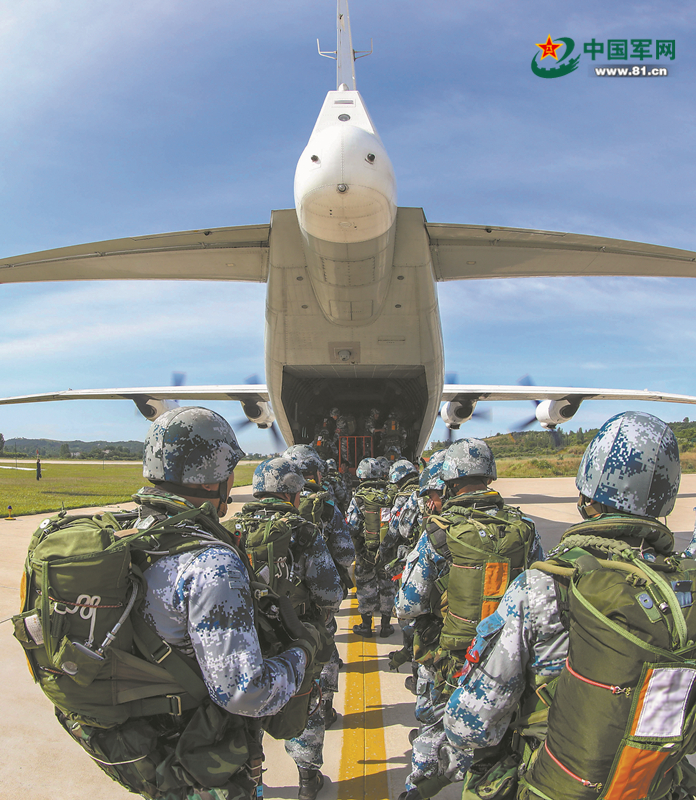 一声令下,官兵快速登机。