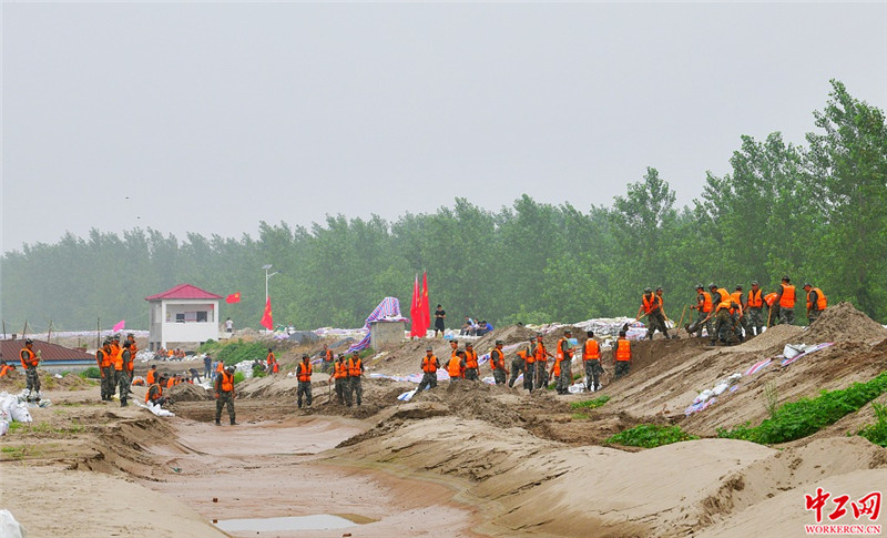 2020年7月15日,东部战区陆军某舟桥旅官兵在江西九江庐山市南康堤抗洪抢险。当天,中国国家卫星气象中心主任杨军对外表示,据卫星遥感监测,中国最大淡水湖——江西鄱阳湖面积进一步扩大。7月14日06时,鄱阳湖主体及附近水域面积达4403平方公里,较历史同期平均值(3510平方公里)偏大25%。五大支流入湖口湿地、鄱阳县昌江和潼津河、千秋河区圩堤决口导致耕地和村庄大面积被淹。人民视觉