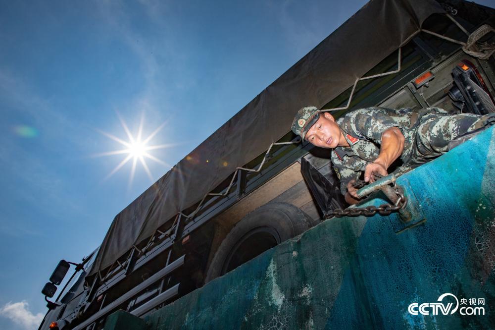 图为武警广西总队汽车驾驶员集训队学员在烈日下进行铁路装卸载训练。(黄志凯 孙立志 余海洋)