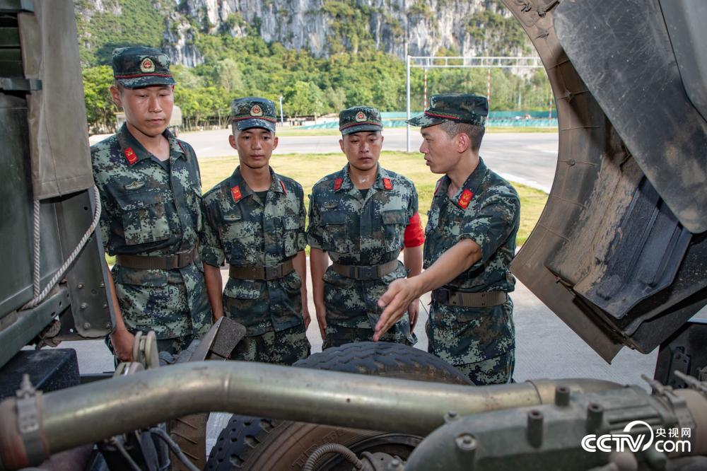 图为武警广西总队汽车驾驶员集训队一名教员在为学员讲解车辆发动机构造。(黄志凯 孙立志 余海洋)