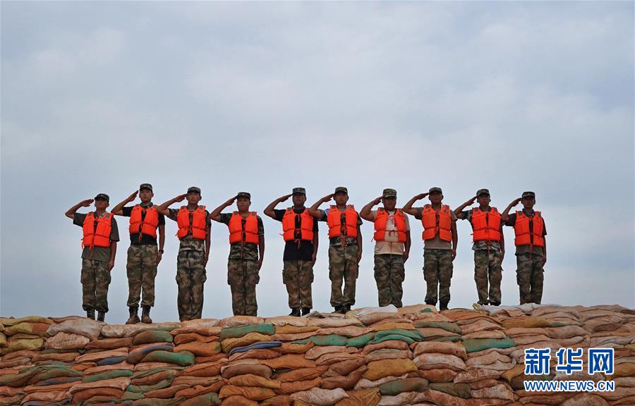 到达鄱阳县的第二天,原鹏帅就与武警江西总队机动支队取得联系。经批准后,退伍老兵们加入了在昌江圩堤抗洪抢险的队伍。 巡堤查险、装运沙袋、加固堤防,老兵们的衣服被汗水和泥水浸透,又被烈日和体温烘干。面前是汹涌的洪水,身后是老乡的家园,10名老兵一直坚守在昌江圩堤上。