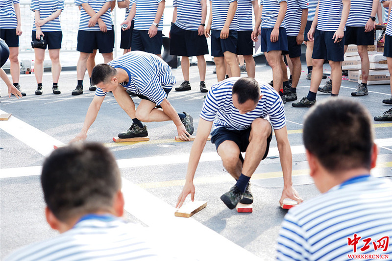 2020年7月20日,海军第35批护航编队举办“青春风采、深蓝情怀”甲板趣味运动会。图为运动会现场。江山/人民视觉