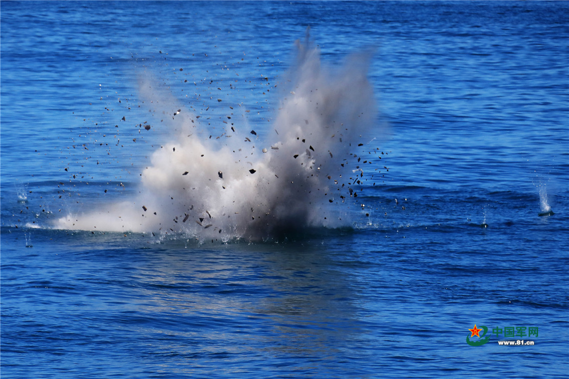 7月22日,编队组织副炮消灭浮雷训练,铜仁舰精准命中海上目标。