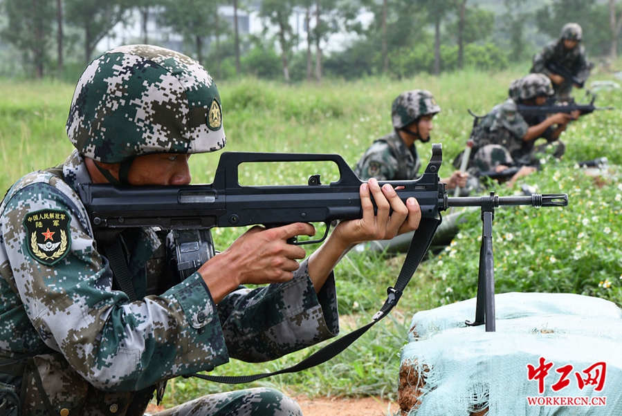 2020年5月28日,陆军第74集团军某旅装步六连士兵们在进行班排战术训练,官兵们交替掩护前进。该连队有着“硬骨头六连”和“英雄硬六连”荣誉称号。人民视觉