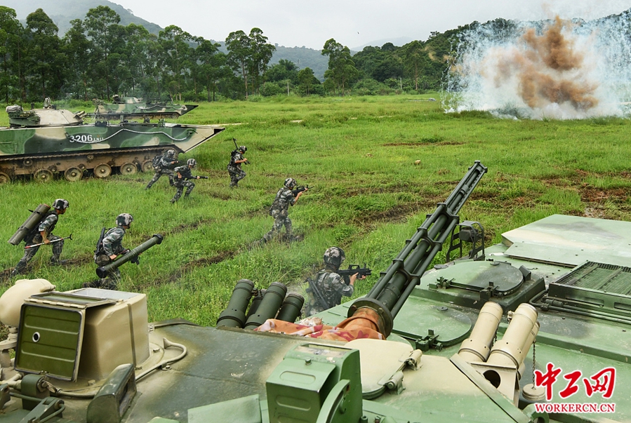 2020年5月27日,实战化演练中,陆军第74集团军某旅装步六连的步战车发射烟幕弹,掩护步兵发起冲击。该连队有着“硬骨头六连”和“英雄硬六连”荣誉称号。人民视觉