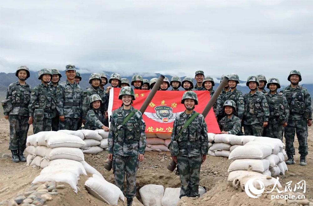 实弹射击结束后,女子导弹排在射击阵地合影留念